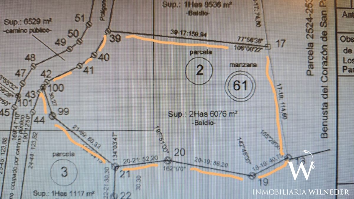 El terreno tiene un camino preparado para el ingreso de vehículos, acceso trabajado con maquinaria. Cuenta con delimitación perimetral con alambrado de hilos.