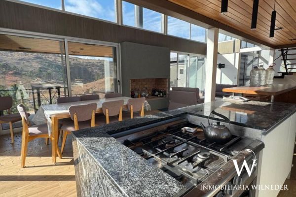 En planta baja se encuentran cocina, comedor, living integrados, 2 habitaciones, una principal con vista a la U del río, otra secundaria, dos baños, un entrepiso que funciona como tercer dormitorio.