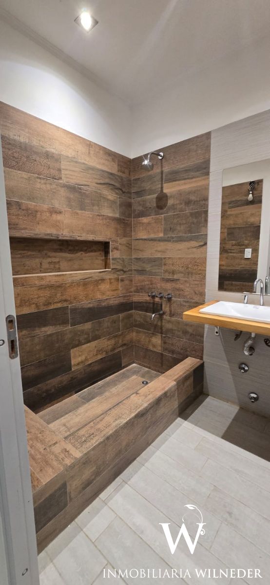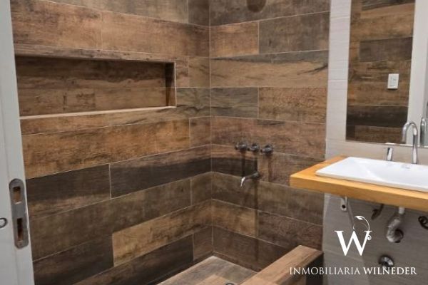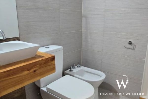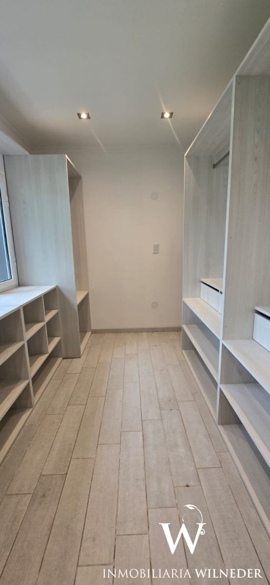 Cuenta con un amplio ambiente integrado de cocina, living comedor, desde allí se accede por un pasillo a los dos dormitorios, 2 baños, uno de los barrios se ubica en el dormitorio principal. Este dormitorio tiene vestidor y ventanales con salida al patio trasero. Los baños tienen ducha en los dos casos.