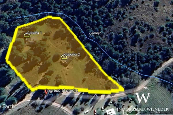 Se vende un lote de 8096m2 con dos cabañas amuebladas, listas para ingresar. En la zona no hay agua corriente ni energía eléctrica. Los servicios están resueltos mediante paneles solares para la energía eléctrica y bomba para el recurso hídrico.