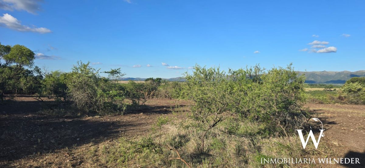 El terreno es plano y tiene vegetación nativa (espinillo, molles) . Vista panorámica a las sierras chicas.