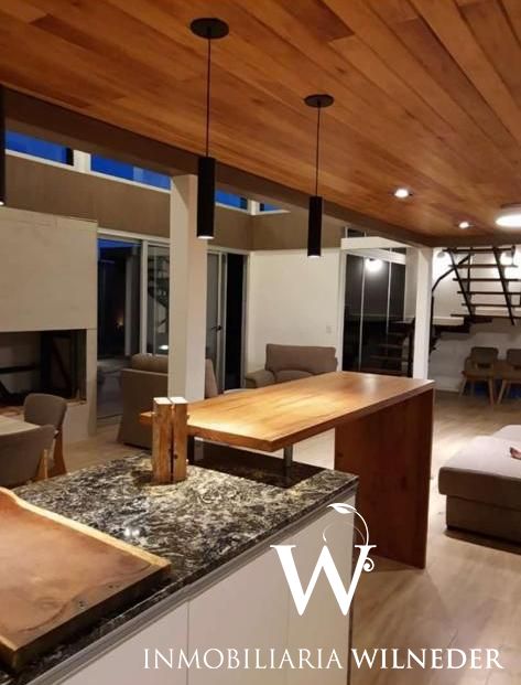 En planta baja se encuentran cocina, comedor, living integrados, 2 habitaciones, una principal con vista a la U del río, otra secundaria, dos baños, un entrepiso que funciona como tercer dormitorio.