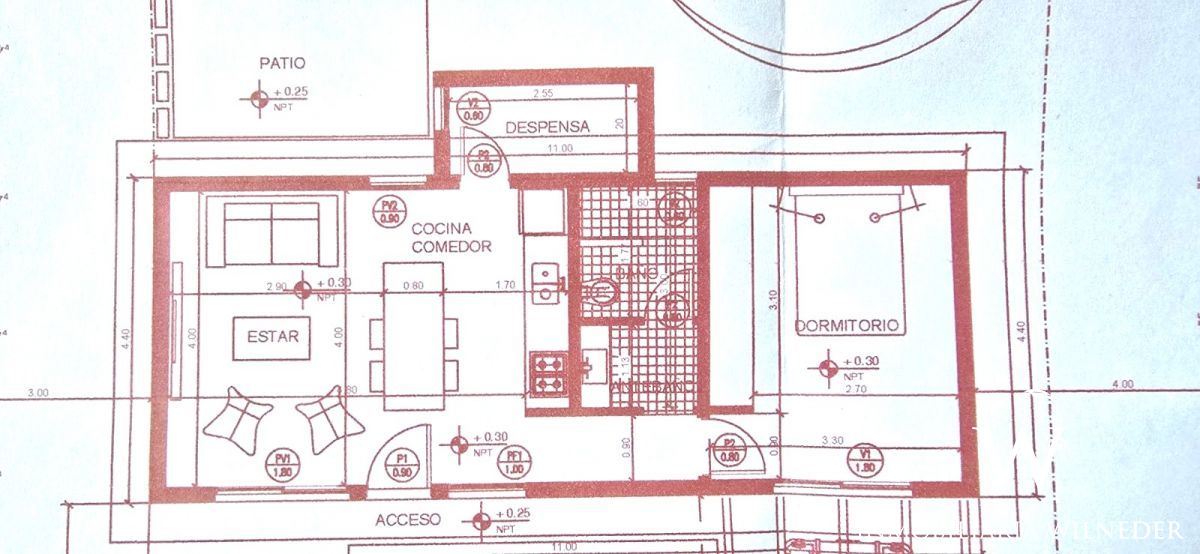 La casa se distribuye en una planta. Se accede desde la puerta principal a un ambiente de cocina, living comedor. Desde allí se ingresa al lavadero.