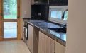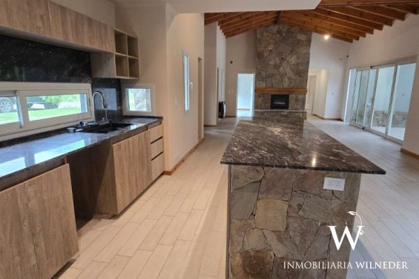 Calefacción con calefactores, aberturas de aluminio doble vidrio, piso cerámico, techo de madera y chapa, muebles de cocina.