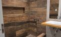 Exterior con revestimiento en piedra.