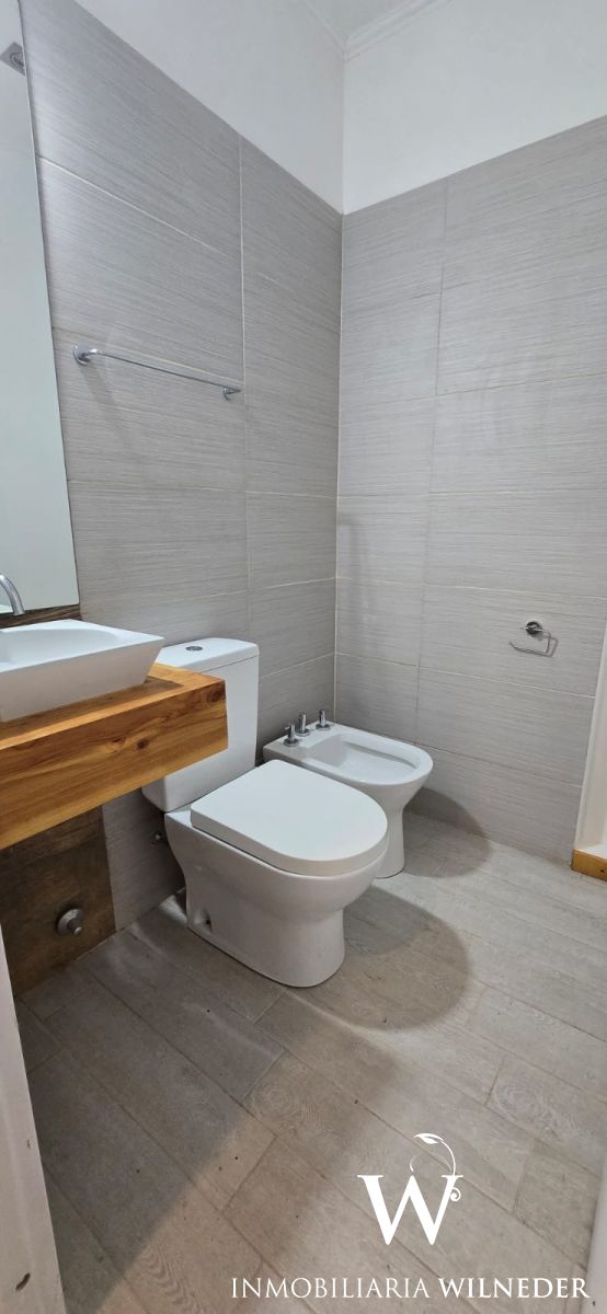 Cuenta con un amplio ambiente integrado de cocina, living comedor, desde allí se accede por un pasillo a los dos dormitorios, 2 baños, uno de los barrios se ubica en el dormitorio principal. Este dormitorio tiene vestidor y ventanales con salida al patio trasero. Los baños tienen ducha en los dos casos.
